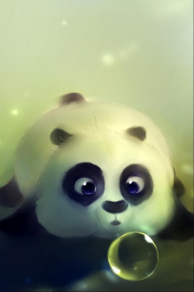- Панда смотрит на медленно опускающийся пузырь Картинки обои для Iphone