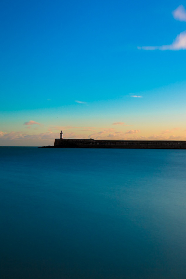 - Майк на пирсе выступающим далеко от берега и окруженный пока еще спокойным морем Природа обои для Iphone